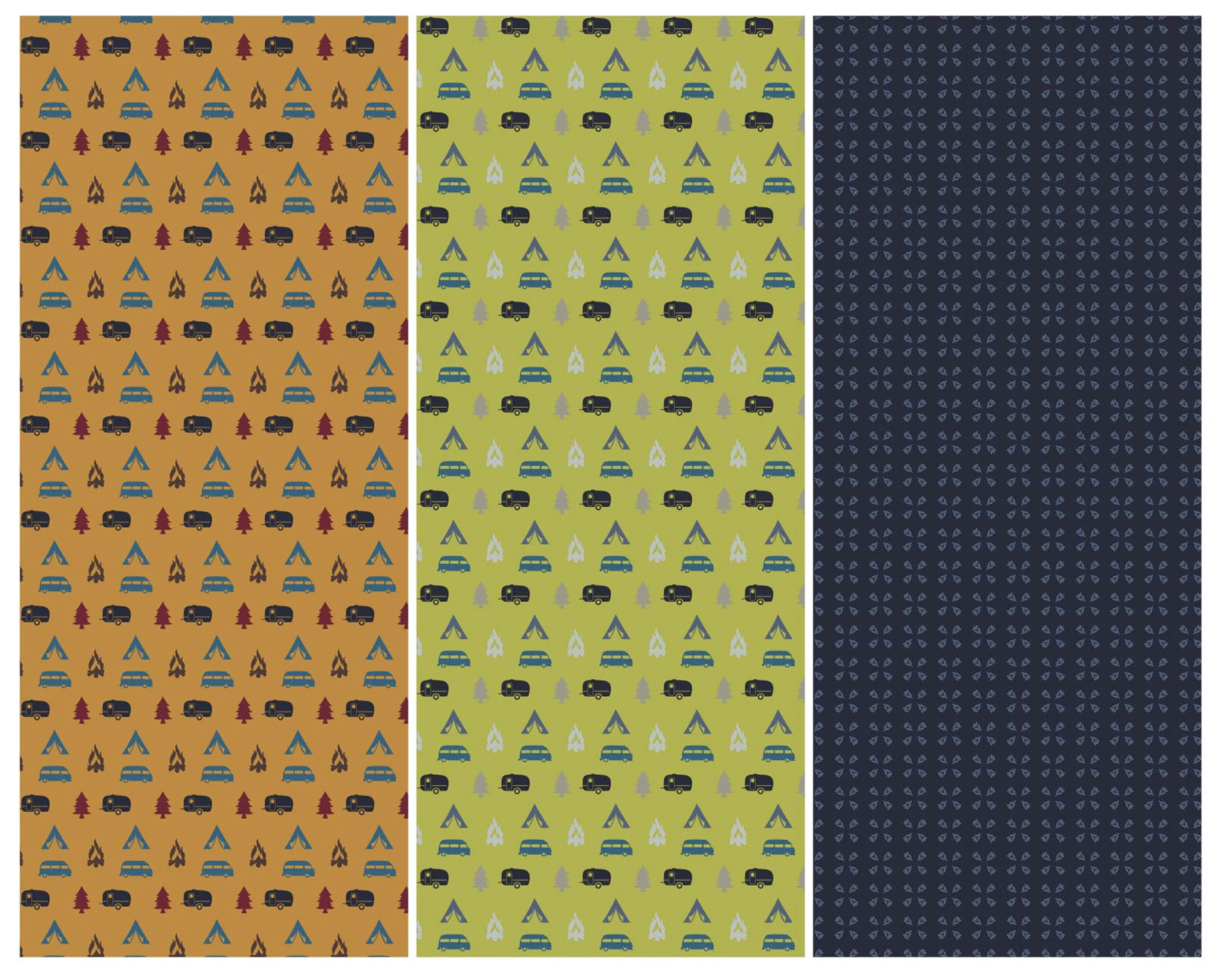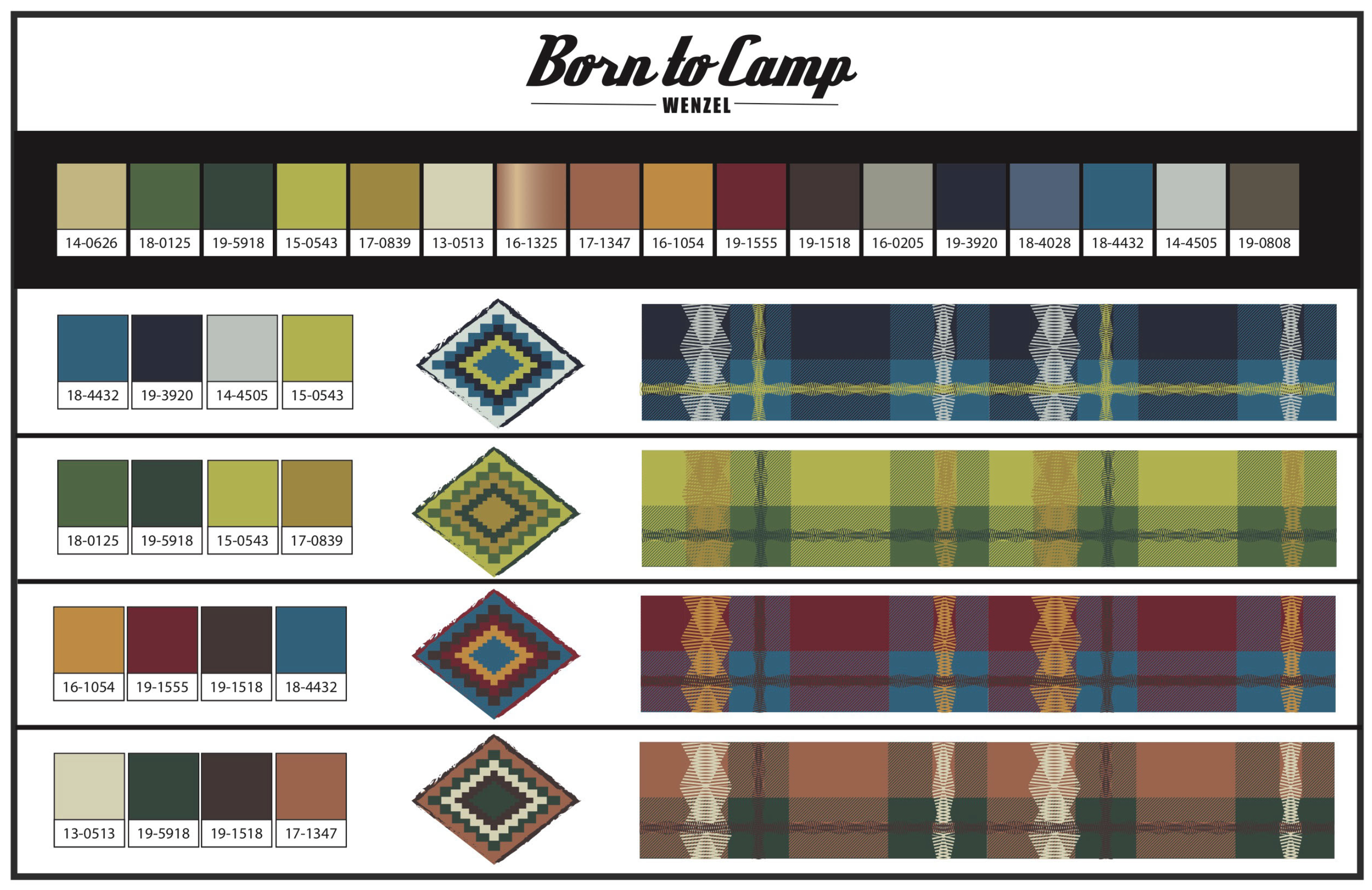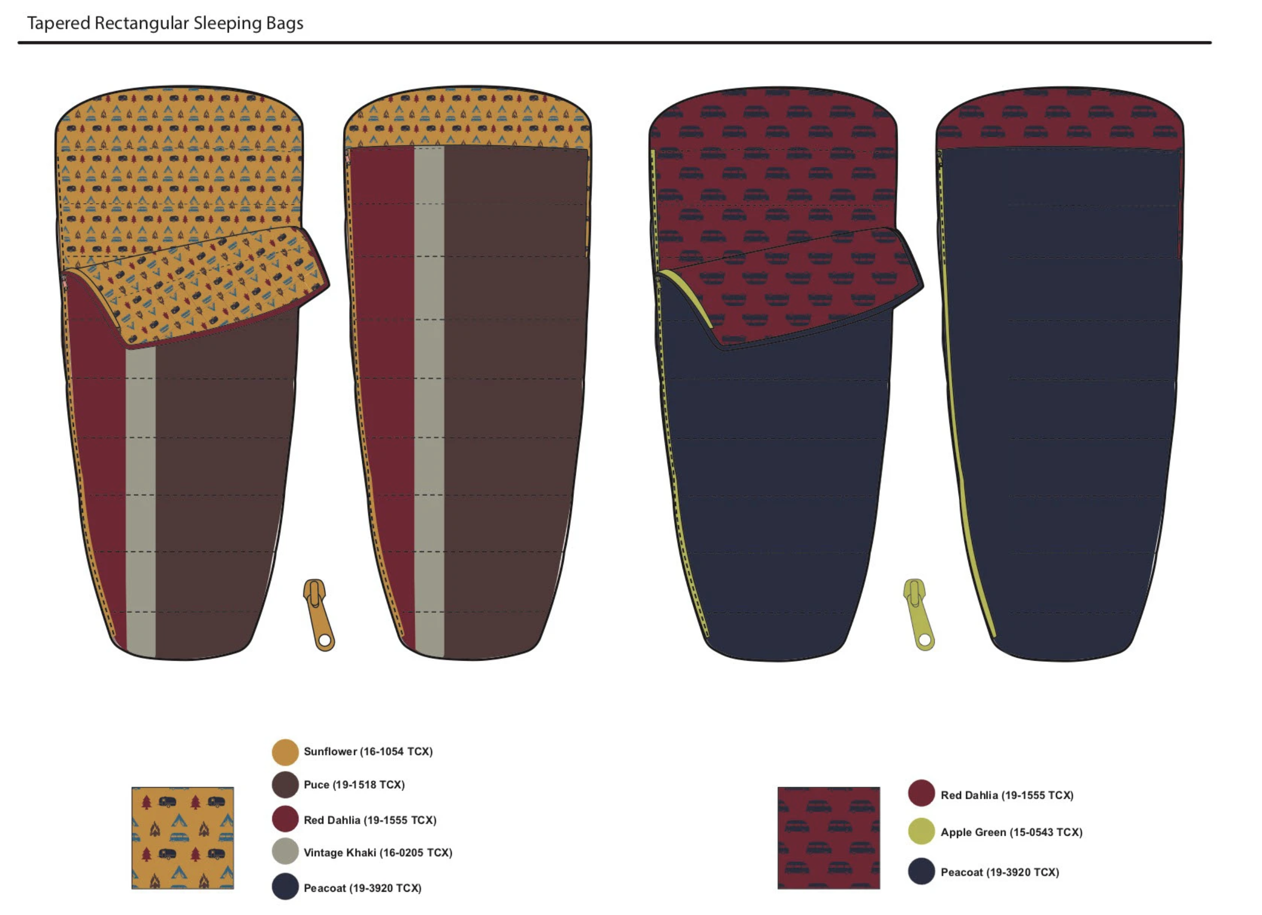 Calico and Conversations was a collaborative design project developed with fellow designers for Wenzel camping equipment. The project began with trend research focused on emerging print directions within the outdoor retail market, which informed the development of the color story and graphic language. I partnered with a graphic designer to develop a custom system of camping icons, which were engineered into repeat calico prints. The prints were strategically placed on camping equipment, with scale, repeat, and placement optimized for product construction and functional use.